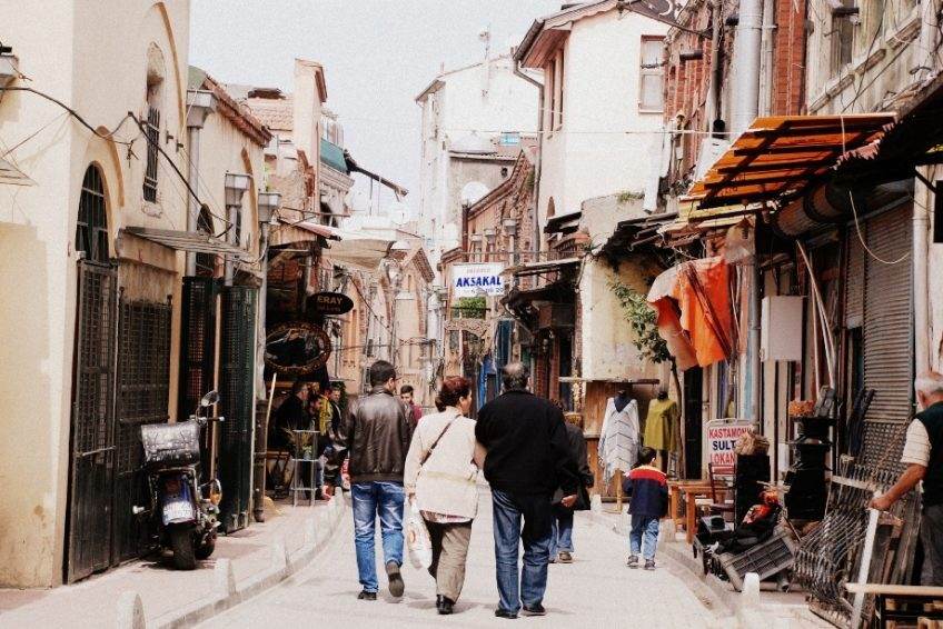 | Eğer ana caddeden içeriye girer ve Leblebiciler Caddesi boyunca yürürseniz farklı zaman dilimlerinden kalan binalara yerleşmiş, iki sokağa yayılmış küçük dükkanlarla dolu eski bir çarşıya ulaşırsınız. Burası Çıfıt yani Yahudi Çarşısı’dır ve şarkılara konu olmuş Agora Meyhanesi’ne de ev sahipliği yapar. Burada Bulgaristan’ın Yanbol kasabasından gelen cemaatin yaptırdığı Yanbol Sinagogu’nun girişini de göreceksiniz. İstanbul’da orijinal ahşap tonoza sahip tek sinagog olarak bilinen bina, 1895 yılında 300 kişinin aynı anda ibadet edebileceği büyüklükte yapılmış. Balat adeta bir atölye; burası fotoğraf sanatını öğrenmek isteyen herkesin en az bir kez uğradığı, profesyonelce poz vermeyi çoktan öğrenmiş çocukların gönüllü asistanlığı ile ilk fotoğrafların çekildiği yer. |