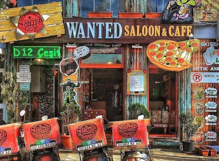 1 Mayıs 2011 de Wanted Pizza Olarak açtık ilk dükkanımızı. Önce şehrin en DEV PİZZA sını sonrada DEVBURGER ve KOCAKÖFTE sini yaptık 25 metrekare küçük bir dükkanda. Sizlerin desteği ve eleştirileriyle kendimizi geliştirmeye çalıştık kendimizce. Nihayet 1 Nisan 2013 te hayallerimizi süsleyen WANTED SALOON u açtık. Artık koskoca iki katımızı ve onlarca masamız vardı, artık sizleri işletmemizde de ağırlayabilecektik. Bizde koskoca dükkana pizza yetmez dedik ve Sufleden, Makarnalara, Kahvaltıdan, Salatalara, kaliteli kahvelerden ücretsiz oyunlara kadar menümüzü, içeriğimizi genişleterek Eskişehir in İLK ve TEK WESTERN-RETRO konseptli Cafe&Restaurant ını açtık. Desteklerinizin devamıyla birlikte en kısa zamanda sizleride bekliyoruz. Yerimiz çok basit İbis otelin Karşısındayız.. Üstelik Gece 03: 00 a kadar açığız..
